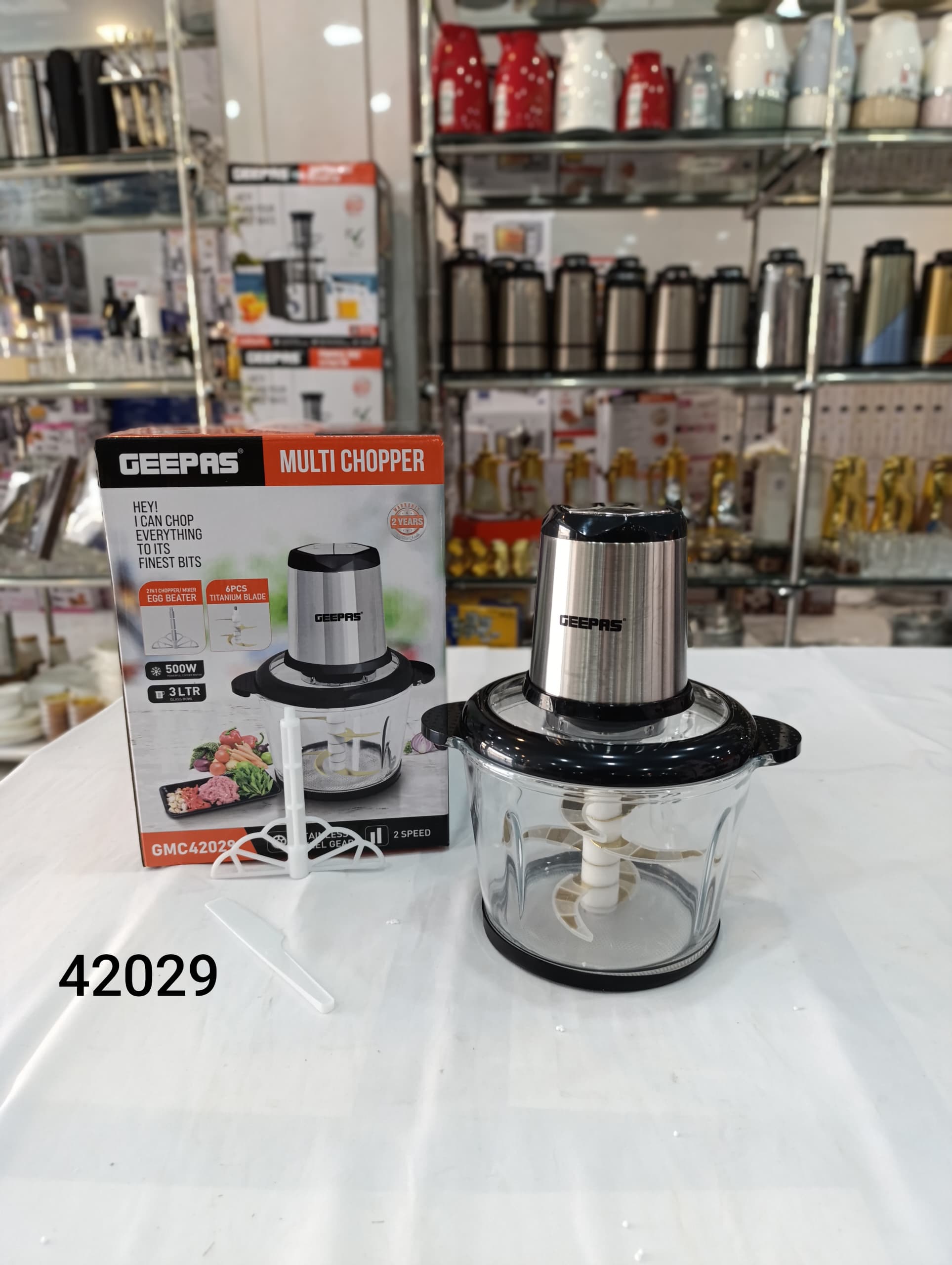 خرد کن جیپاس مدل GMC42029 توان 500 وات تعداد سرعت: 3 دور جنس ظرف شیشه جنس بدنه: استیل ضد زنگ ظرفیت: 3 لیتر جنس تیغه: استیل ضد زنگ نوع موتور: تمام مس برند: جیپاس