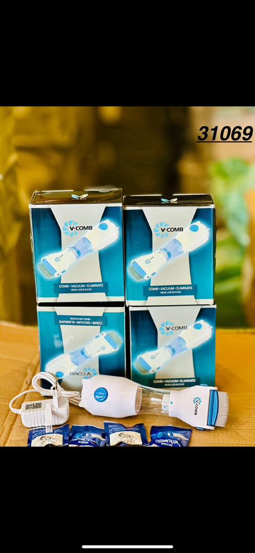 شانه الکتریکی شپش گیر V-COMB تنها راه درمان قطعی و اسان بیماری شپش و رشک با دستگاه و محلول است.دستگاه مکنده شپش و تخم شپش (رشک )بهترین روش درمان بیماری واگیردار شپش و تخم ان می باشد.شانه v-comb از دندانه های تماما استیل و ضد زنگ و نزدیک به هم و عاج دار تشکیل شده است و با قدرت مکش خوبی که دستگاه دارد شپش و مهم ترهمه تخم شپش را مپل جاروبرقی از موها جدا و به فیلتر دستگاه میفرستد .