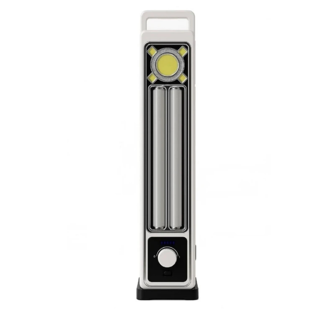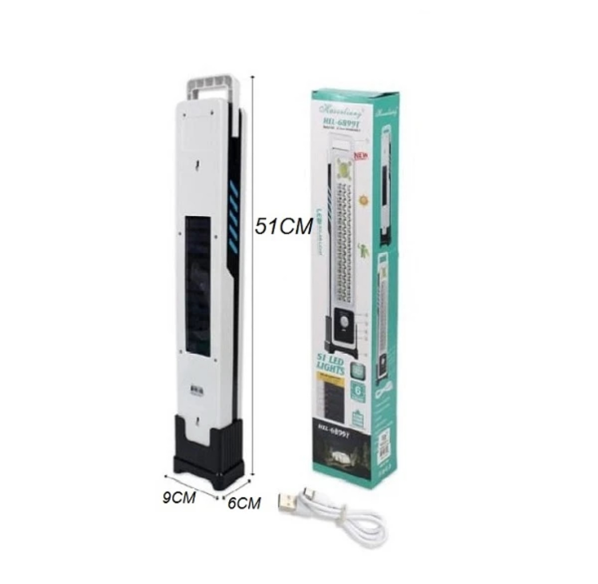 جراغ اضطرارى مدل 68991 بدنه مقاوم ساخته شده از پلاستيك با كيفيت داراى يك عدد پايه جهت ايستايى جراغ روى ميز و سطوح صاف مجهز به 51 عدد لامب LED و سه عدد جراغ COB، توان خروجى جراغ معادل 3 وات (هركدام) رنك نور به صورت مهتابى ، آفتابي، تركيبى است همجنين نور جراغ COB به دو صورت مهتابى كم نور و مهتابى پرنور است .تامين انرثى توسط باترى ليتيومى داخلى ظرفيت باترى 2400 ميلى آمير ساعت ميباشد. امكان شارر مجدد باترى از طريق پورت ميكرو يو اس بى و كابل همراه و يا پنل خورشيدى ميباشد .روى بدنه داراى نشانكر LED، مجهز به دركاه USB جهت شارة اضطرارى تلفن همراه (پاوربانك)، مجهز به كليد فيزيكى به منظور روشن و خاموش كردن جراغ، وتغيير حالت نوردهى و سوييج بين جراغ ها .داراى دستكيره تاشونده جهت آويختن جراغ يا حمل آسان، مجهز به شيار ميخ/پيج جهت اتصال جراغ به ديوار و يك پايه قابل جدا كردن جهت استفاده به صورت روميزى ميباشد
